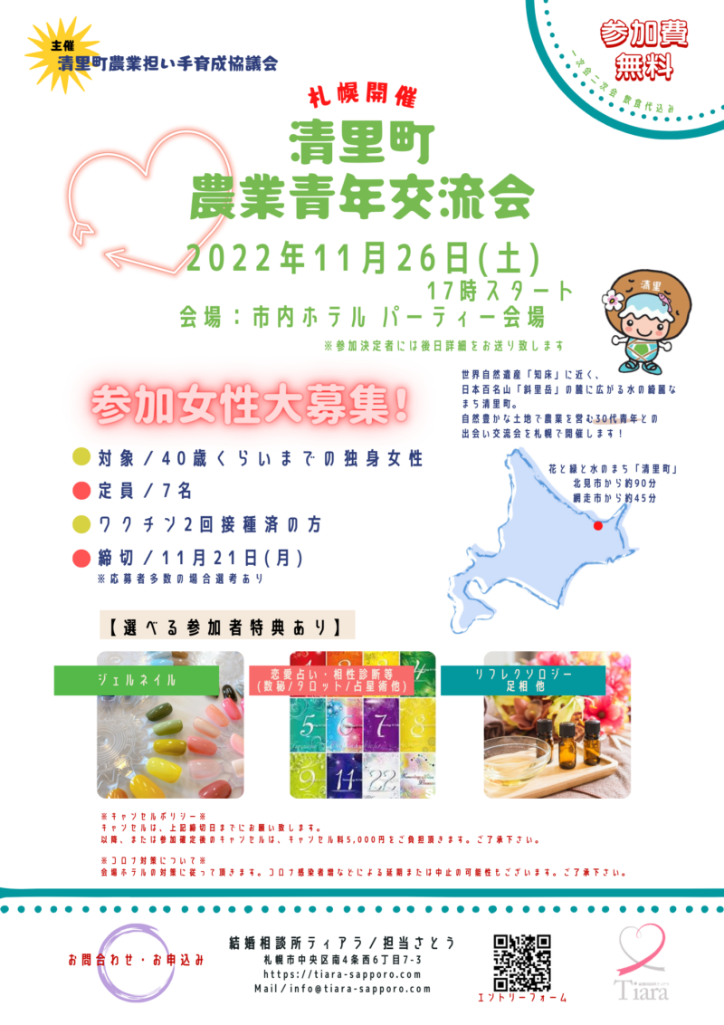 この自然豊かな土地で農業を営む30代青年との出会い交流会を札幌市内にて開催致します。