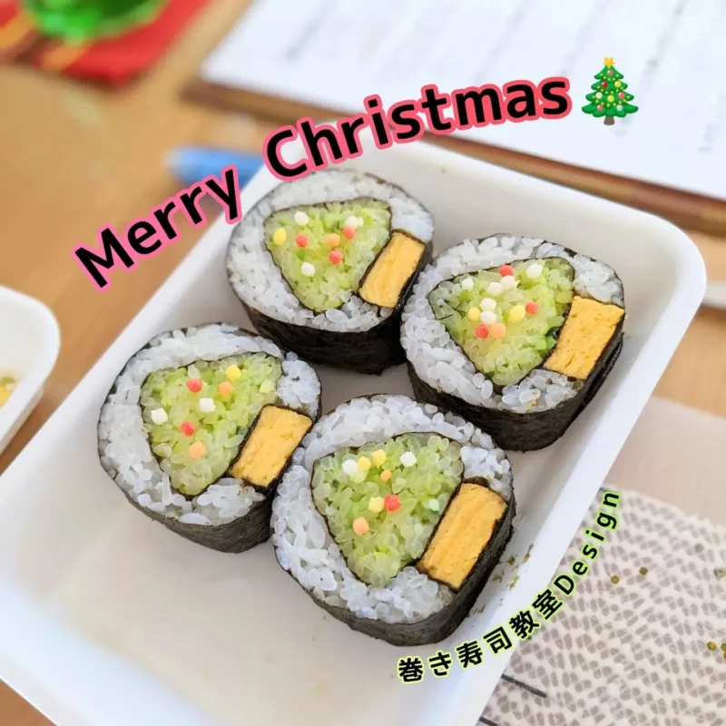 可愛いサンタクロースとクリスマスツリーの飾り巻き寿司を作ってみましょう!